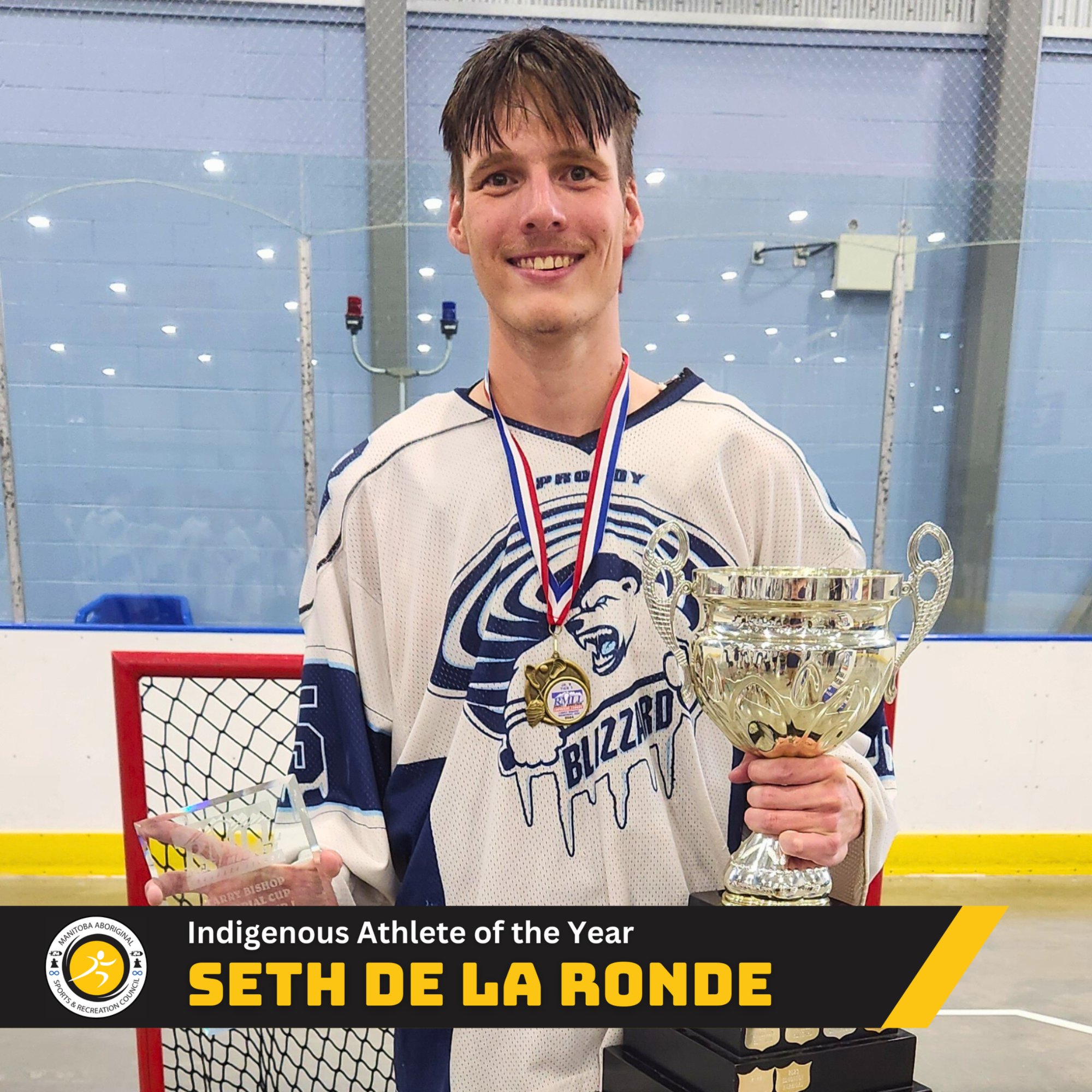 Seth De La Ronde is a proud member of the Red River Métis Nation. In the winter of 2021, Seth faced a life-changing challenge when he was involved in a severe car accident that resulted in a broken neck. Medical professionals said that he might never play sports again. However, Seth refused to let this setback define him. With unwavering resilience and determination, he dedicated himself to recovery and emerged stronger than ever. Proving that adversity can be transformed into an opportunity for growth. Today, he is in better shape than before his injury and continues to inspire those close to him.